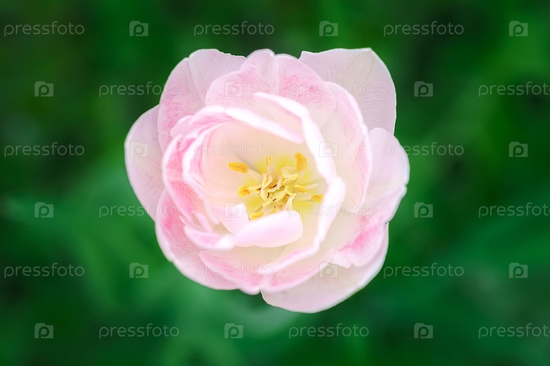 Крупный план розового тюльпана на мягком зеленом фоне в Нидерландах