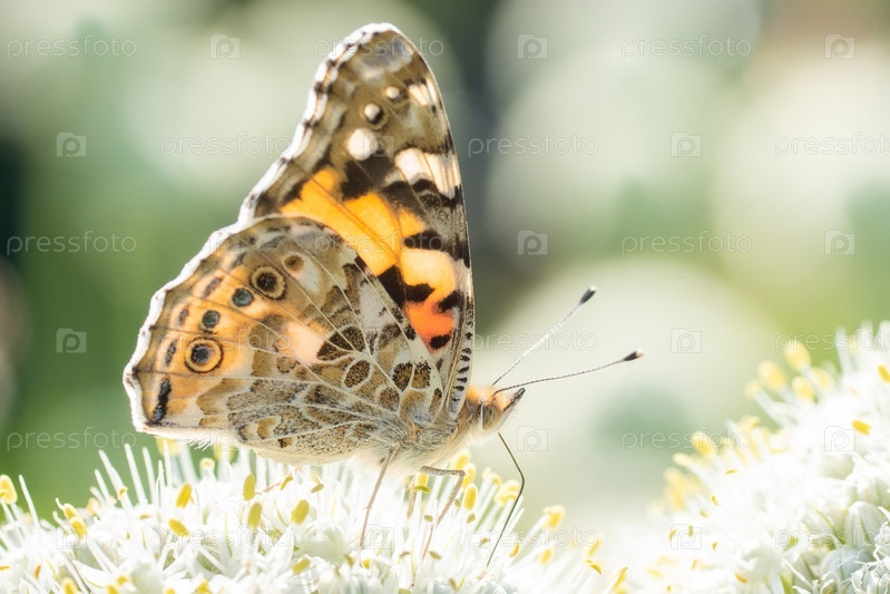 Бабочка на цветке в зеленой природе