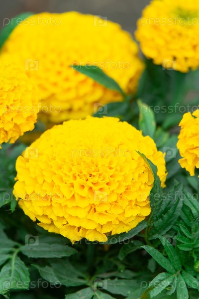 Тельцы (Tagetes erecta, мексиканские тельца, ацтекские тельца, африканские тельца) в саду