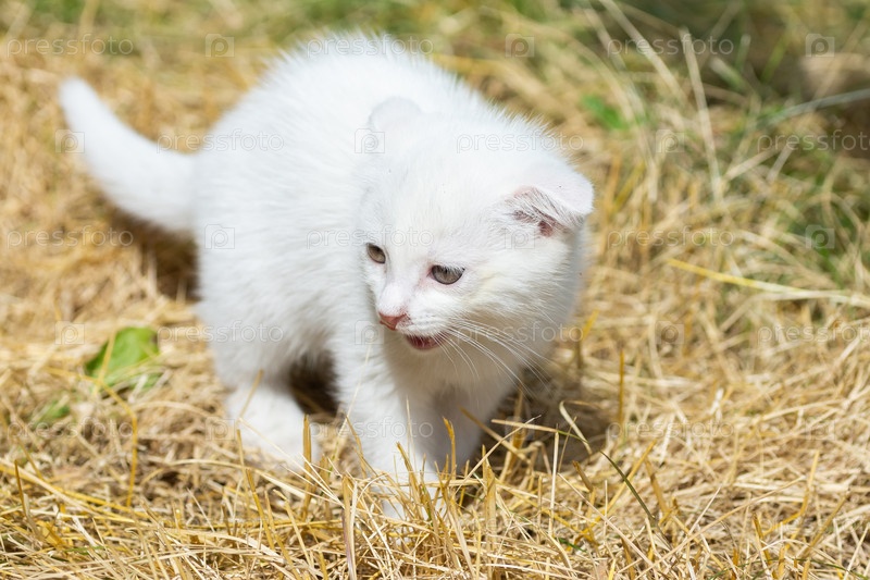 Белый котенок в траве