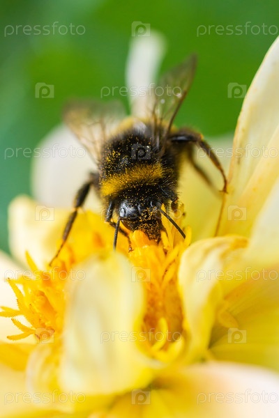Шмель на цветке макро. Шмель собирает нектар цветка