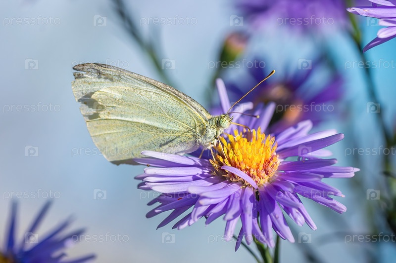 Белая бабочка с зелеными прожилками - подробный макроснимок