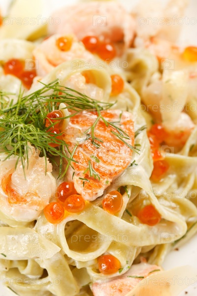 Макароны с лососем и икрой