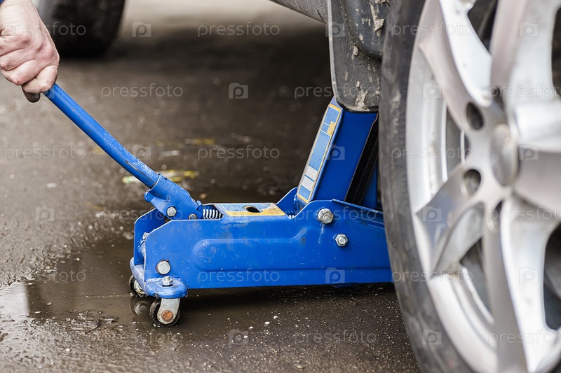 Замена колеса автомобиля с помощью ручного домкрата