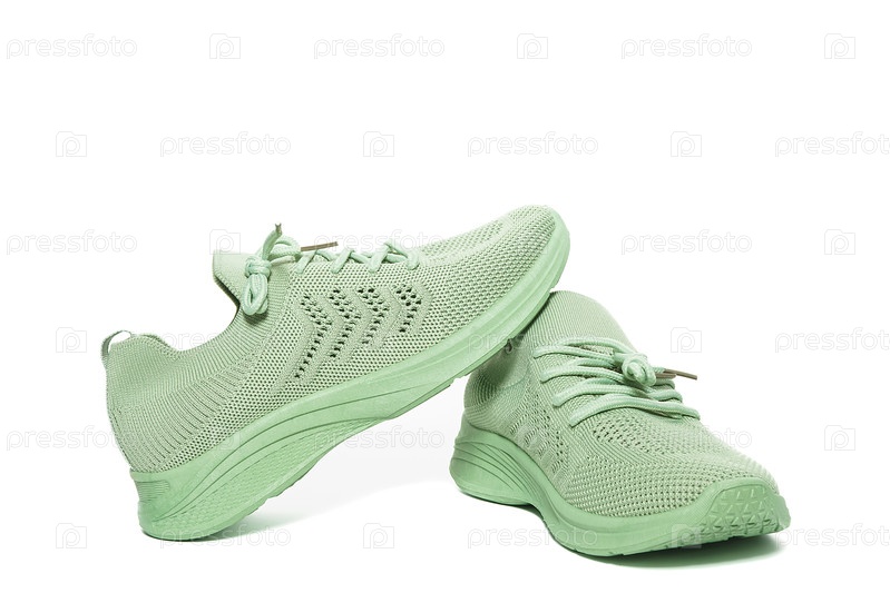 Летние зеленые повседневные кроссовки из сетчатой ткани, на белом фоне, изолированные