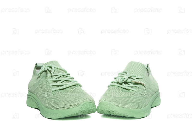 Летние зеленые повседневные кроссовки из сетчатой ткани, на белом фоне, изолированные