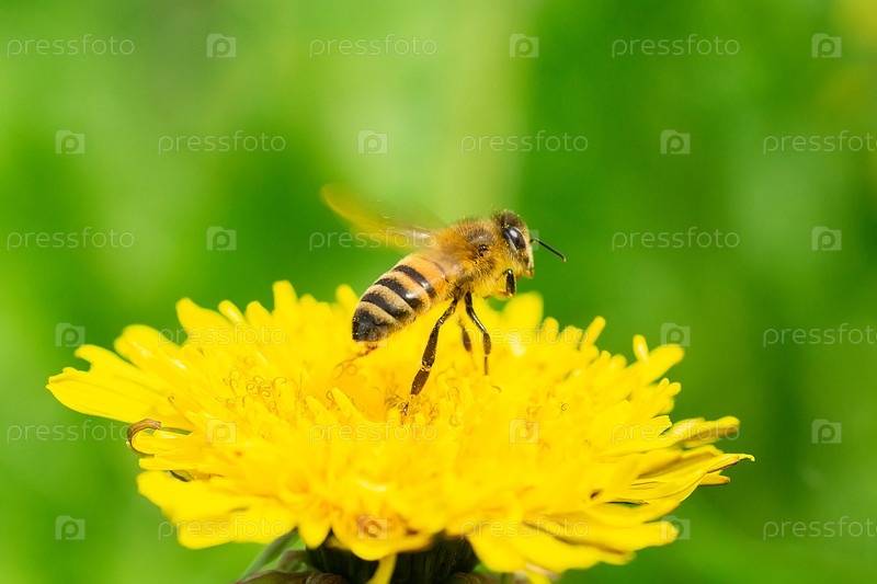 Пчела летает над одуванчиком