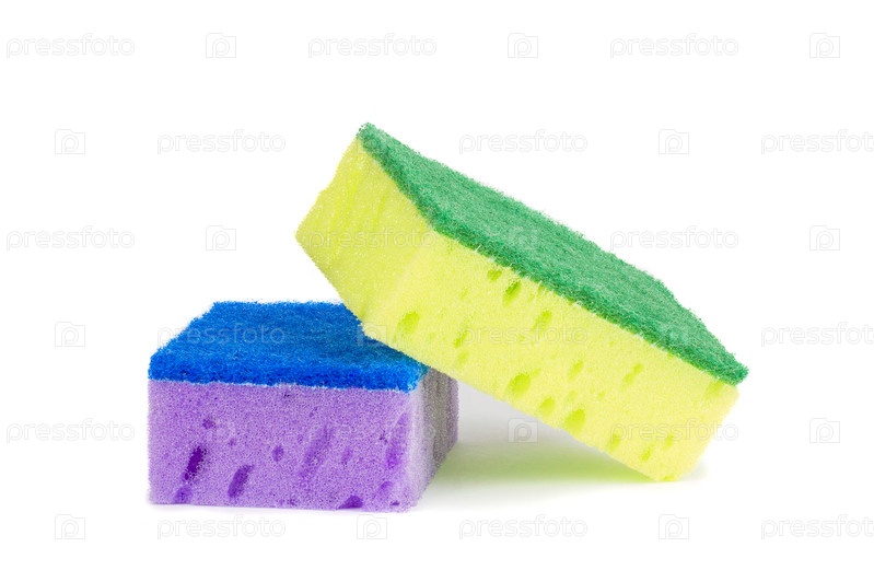 Разноцветные губки для уборки, изолированные на белом фоне. Губки для мытья посуды