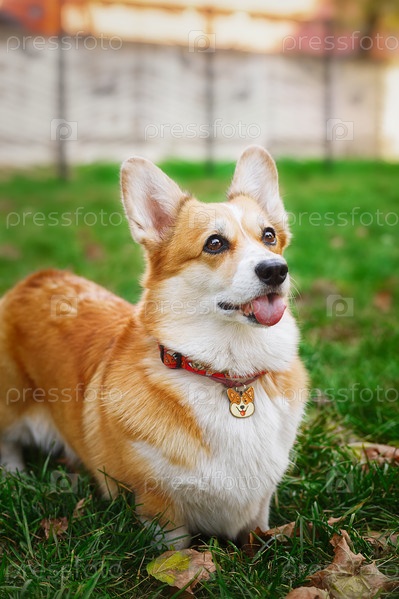 Красивая собака корги в осеннем парке