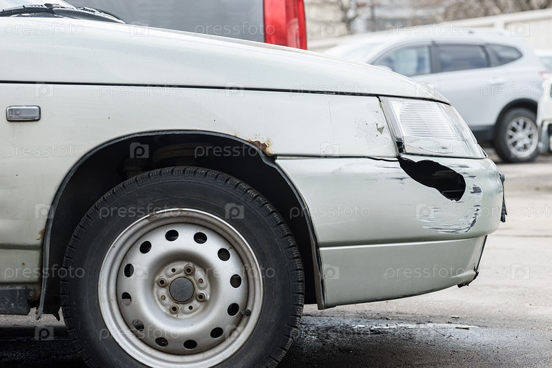 Старый ржавый и пыльный автомобиль, припаркованный на улице