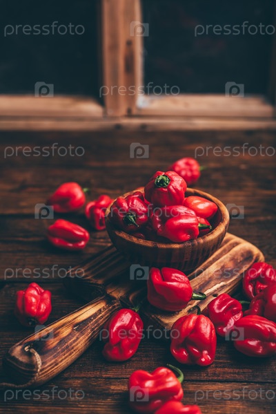 Красный перец хабанеро в миске