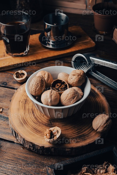 Винтажная миска, полная грецких орехов