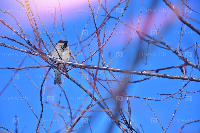 Птица воробей на ветке на солнце. Воробей весной днем на солнышке вкустах