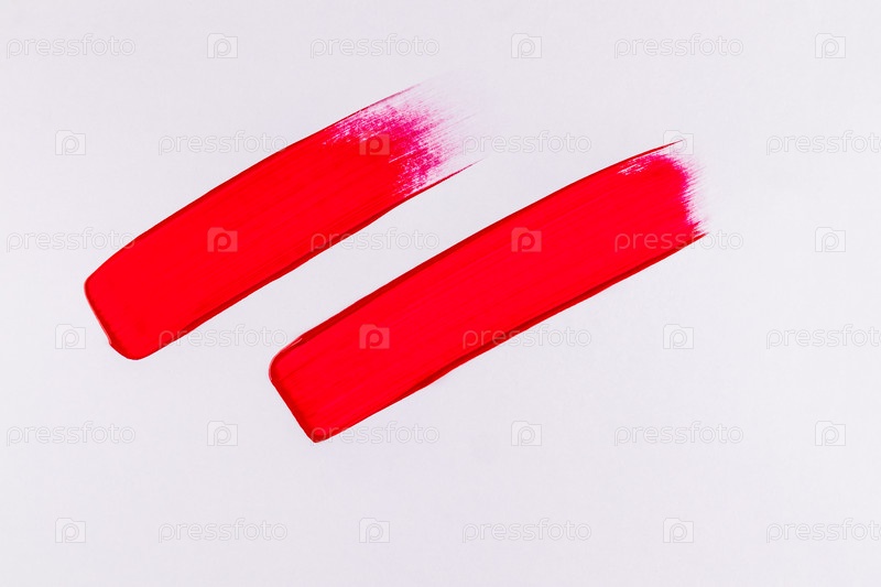 Два красивых мазка красной акриловой краски, акварель, гуашь на белом фоне с копией пространства. Концепция образцов краски, макет