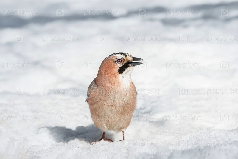 Крупный план евразийской соколы (Garrulus glandarius) на дереве зимой