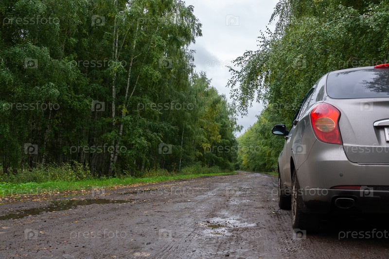 Фрагмент автомобиля в осеннем пейзаже