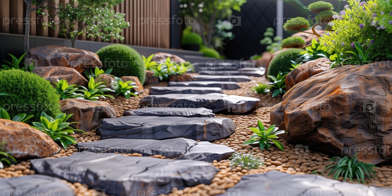 Горизонтальный фон с фрагментом восточного сада