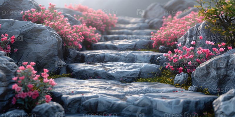 Горизонтальный фон с фрагментом альпийского сада