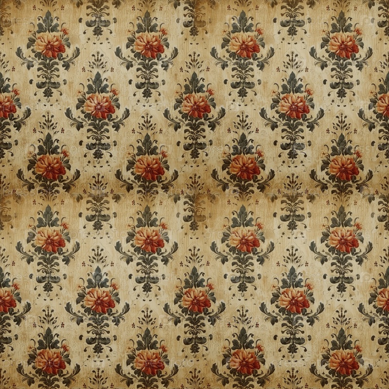Винтажный цветочный фон, бесшовный узор на старых бумажных обоях