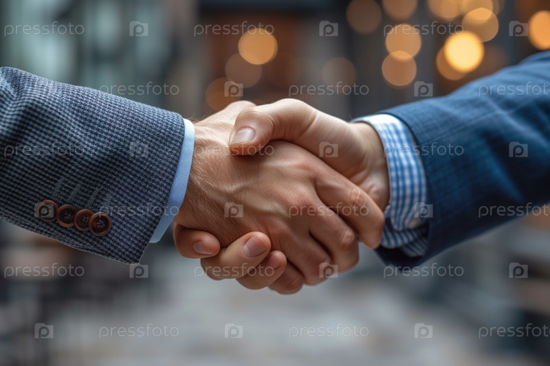 Деловые люди пожимают друг другу руки, крупный план, рукопожатие на встрече или переговорах