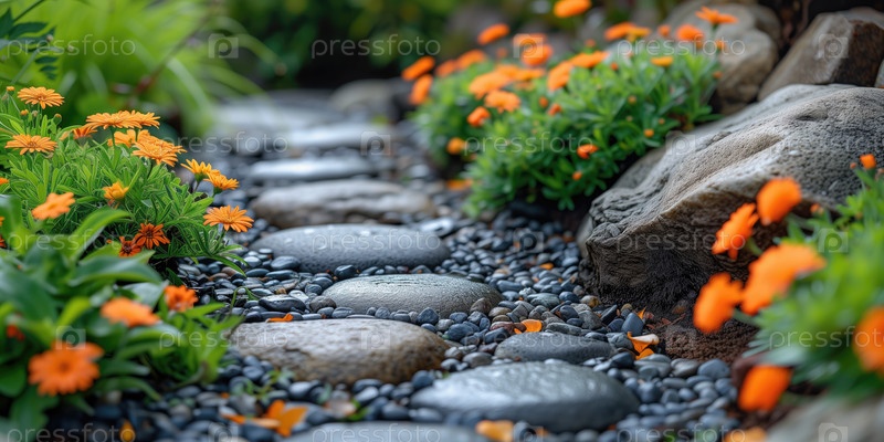 Горизонтальный фон с фрагментом альпийского сада