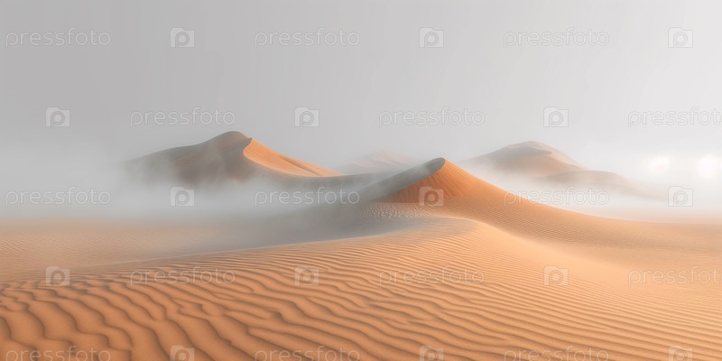 Утренний туман среди пустынных дюн