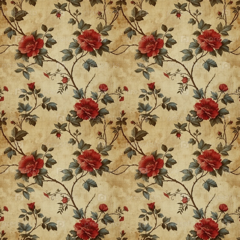 Винтажный цветочный фон, бесшовный узор на старых бумажных обоях