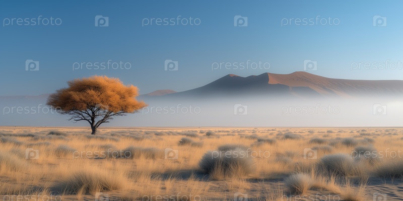 Пейзаж равнины саванны с одиноким деревом акации