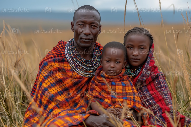 Коренная африканская семья в традиционной одежде