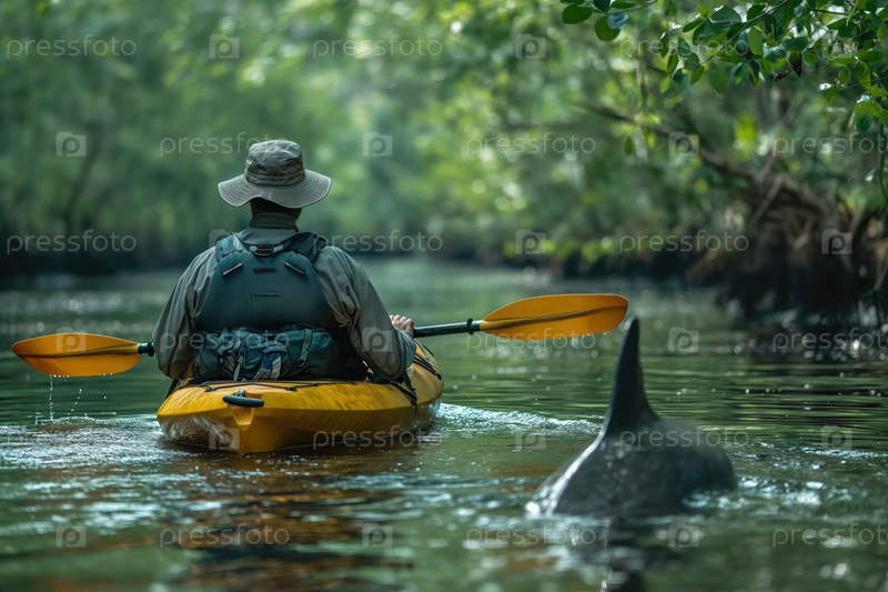 Экотуризм, катание на байдарках вдоль мангрового побережья с наблюдением за дельфинами