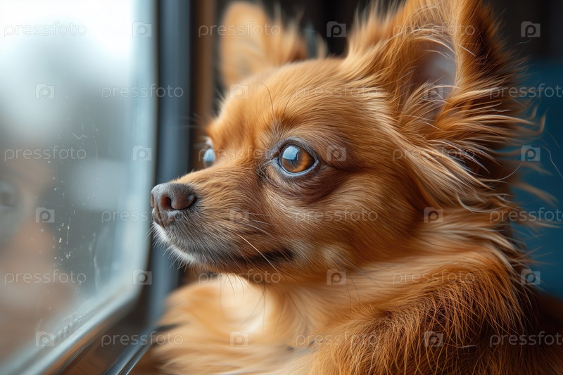 Собака чихуахуа едет в машине, смотрит в окно