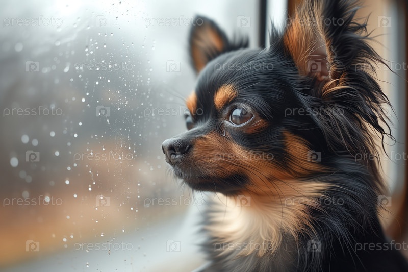 Собака чихуахуа едет в машине, смотрит в окно