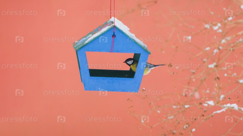 Птицы в кормушке холодным зимним днем