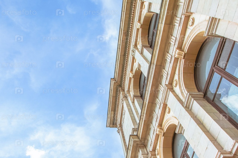 Часть старого архитектурного комплекса, голубое небо, белые облака сзади