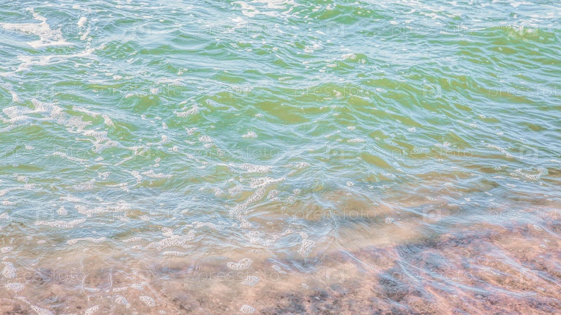 Кристально чистая лазурная вода с морской пеной, морской пейзаж на заднем плане
