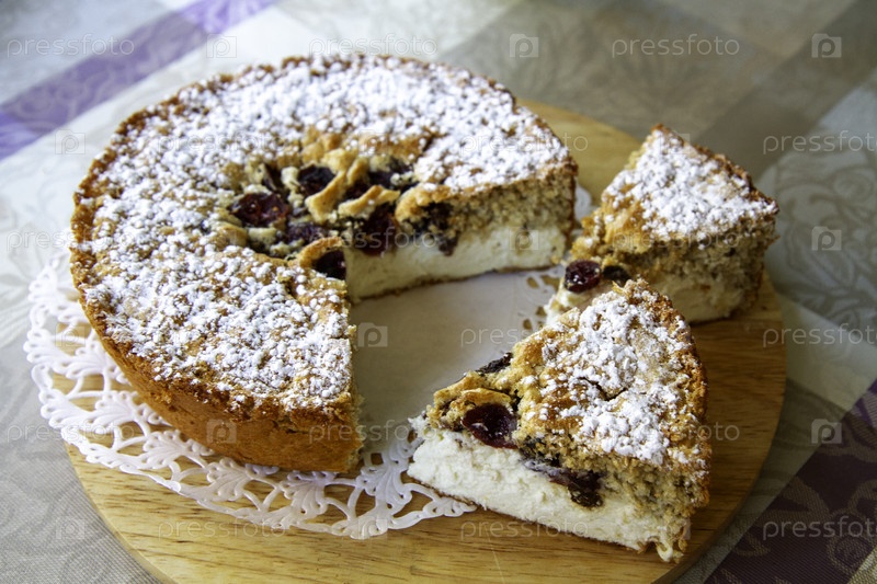 Домашний чизкейк с ягодами и сахарной пудрой/