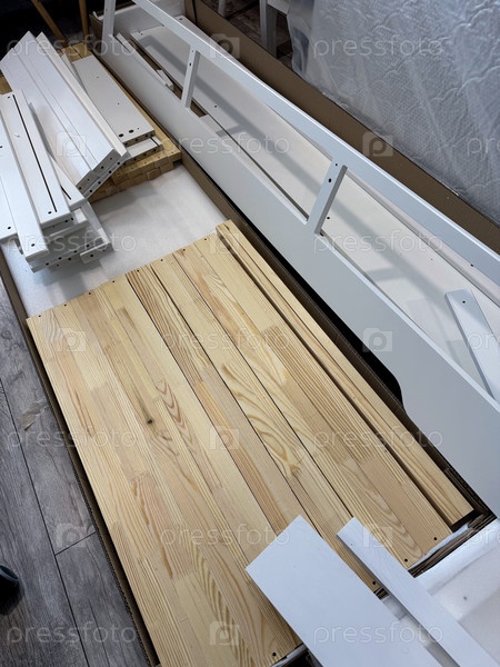 Набор элементов для сборки пуфа. Разложить на полу