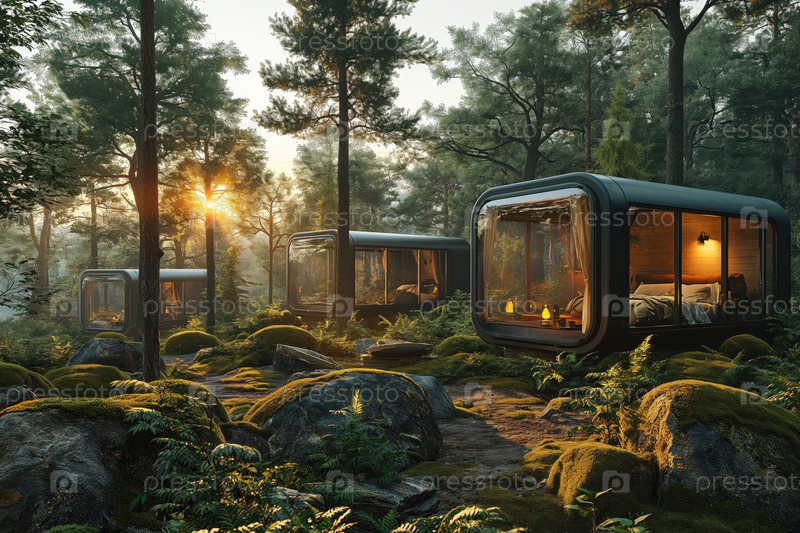 Мини-отель, футуристические домики в лесистых горах