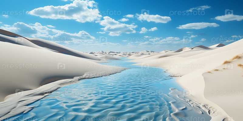 Озеро с чистой водой между дюнами в пустыне после дождя