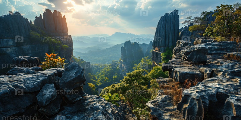 Красивая горная местность с карстовыми скалами
