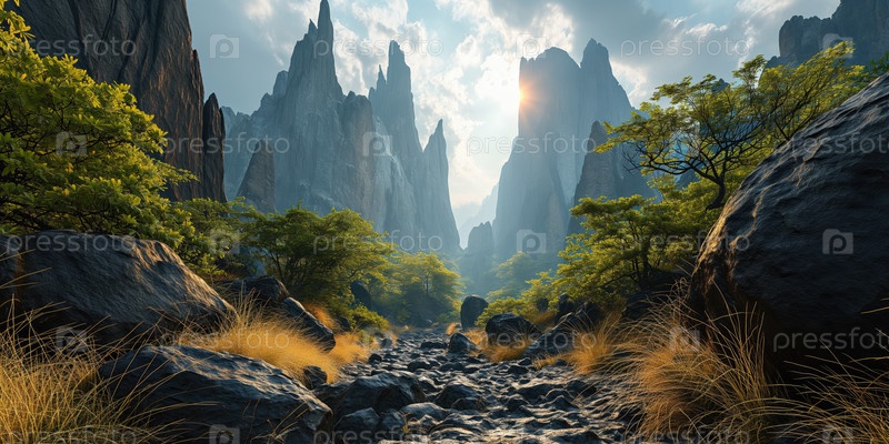 Красивый горный пейзаж с природными каменными скалами и утесами