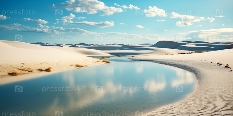 Лагуна с чистой водой между дюнами в пустыне после дождя