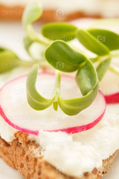 Бутерброды с редисом и ростками подсолнечника