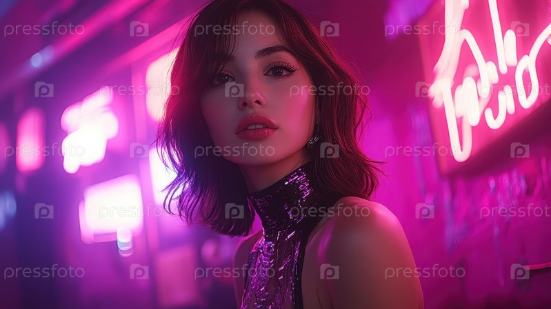 Элегантность и таинственность в неоновом дожде ночного города
