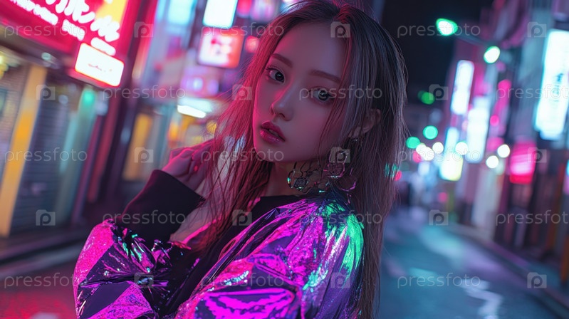 Неоновая мода на оживленной улице Токио ночью