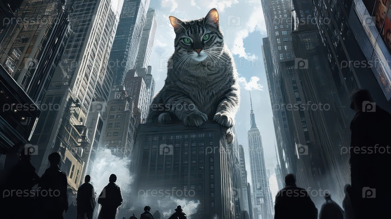 Гигантский кот в футуристическом городе