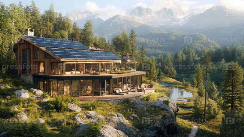 Роскошный экологически чистый горный дом с солнечными панелями и панорамным видом