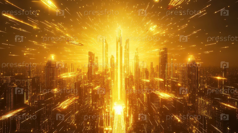 Золотой футуристический городской пейзаж