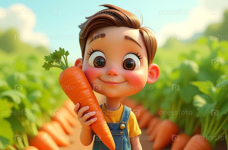 Большой огород Морковки, ферма, рассада, растения, овощи. Генеративный ИИ
