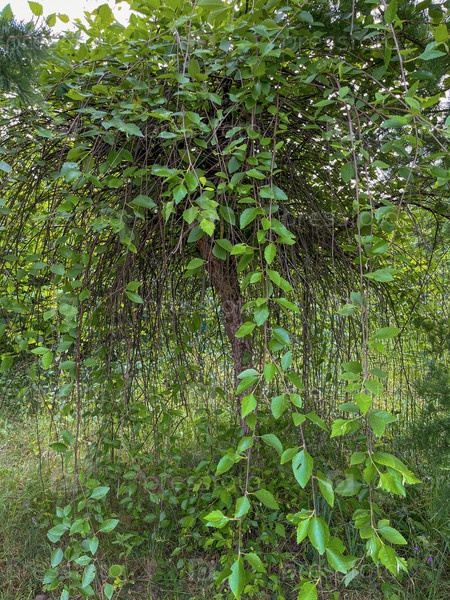 Дерево в парке с кроной, растущей вниз